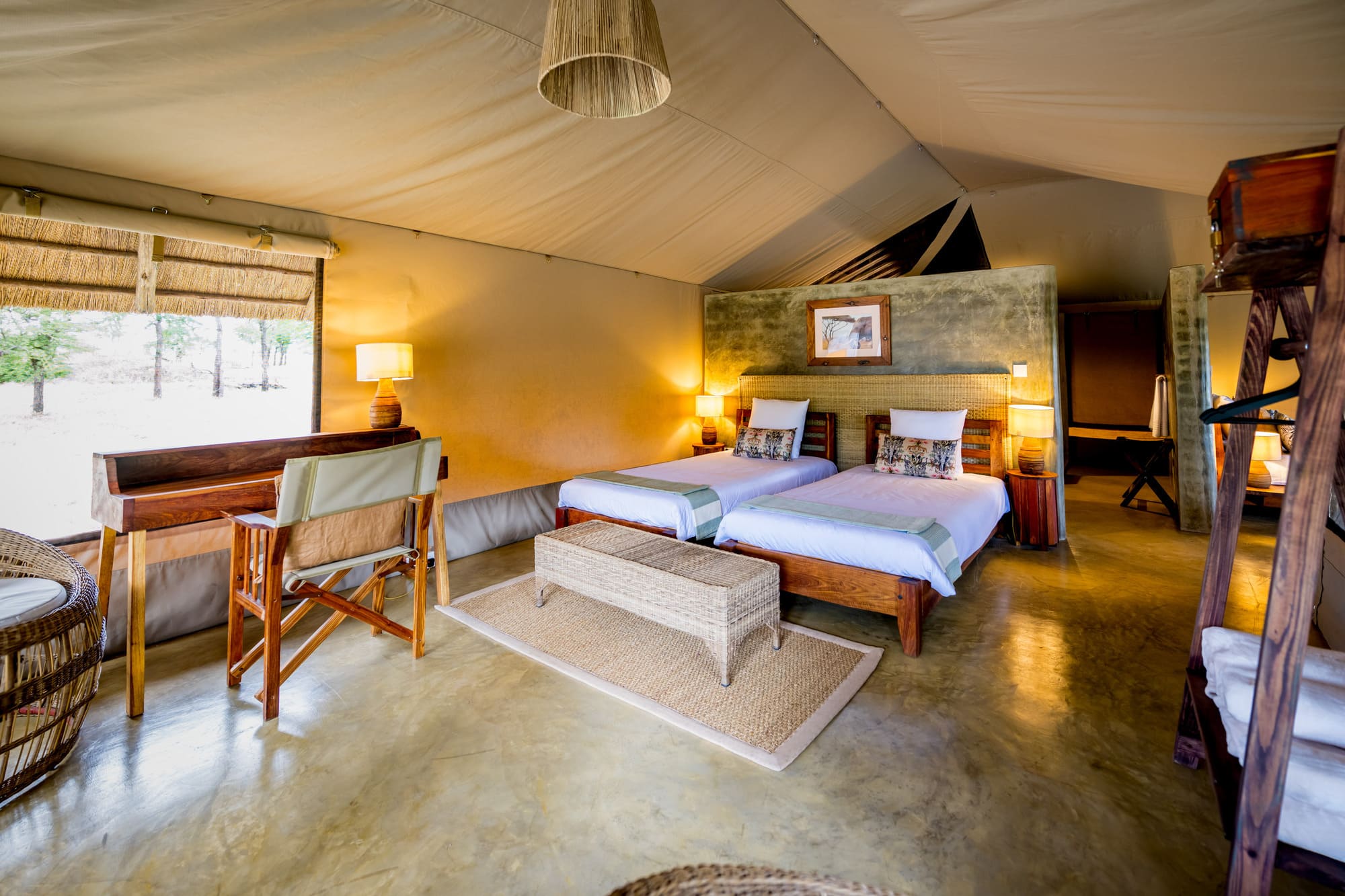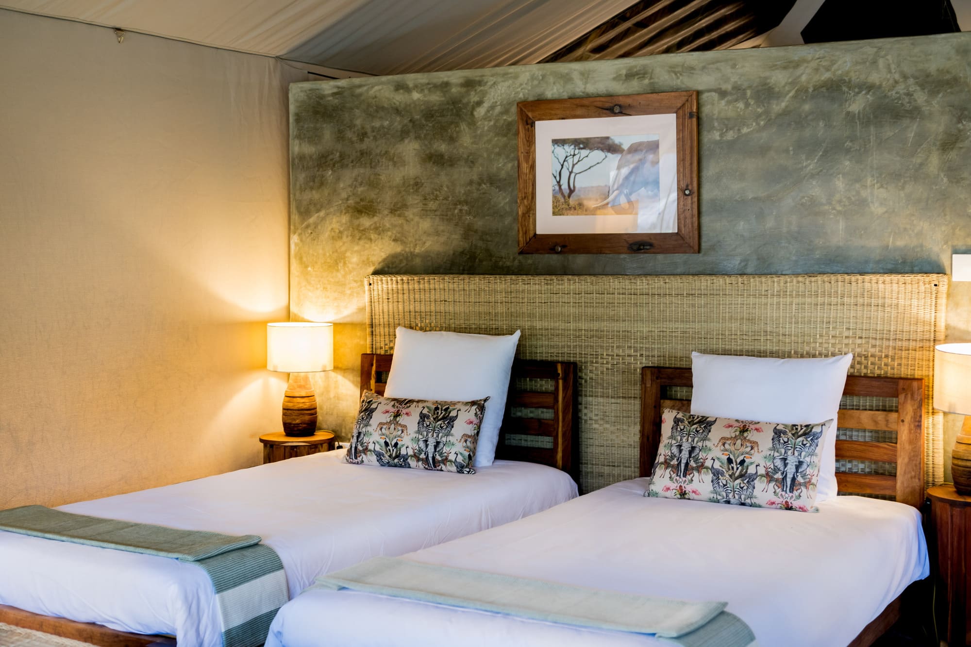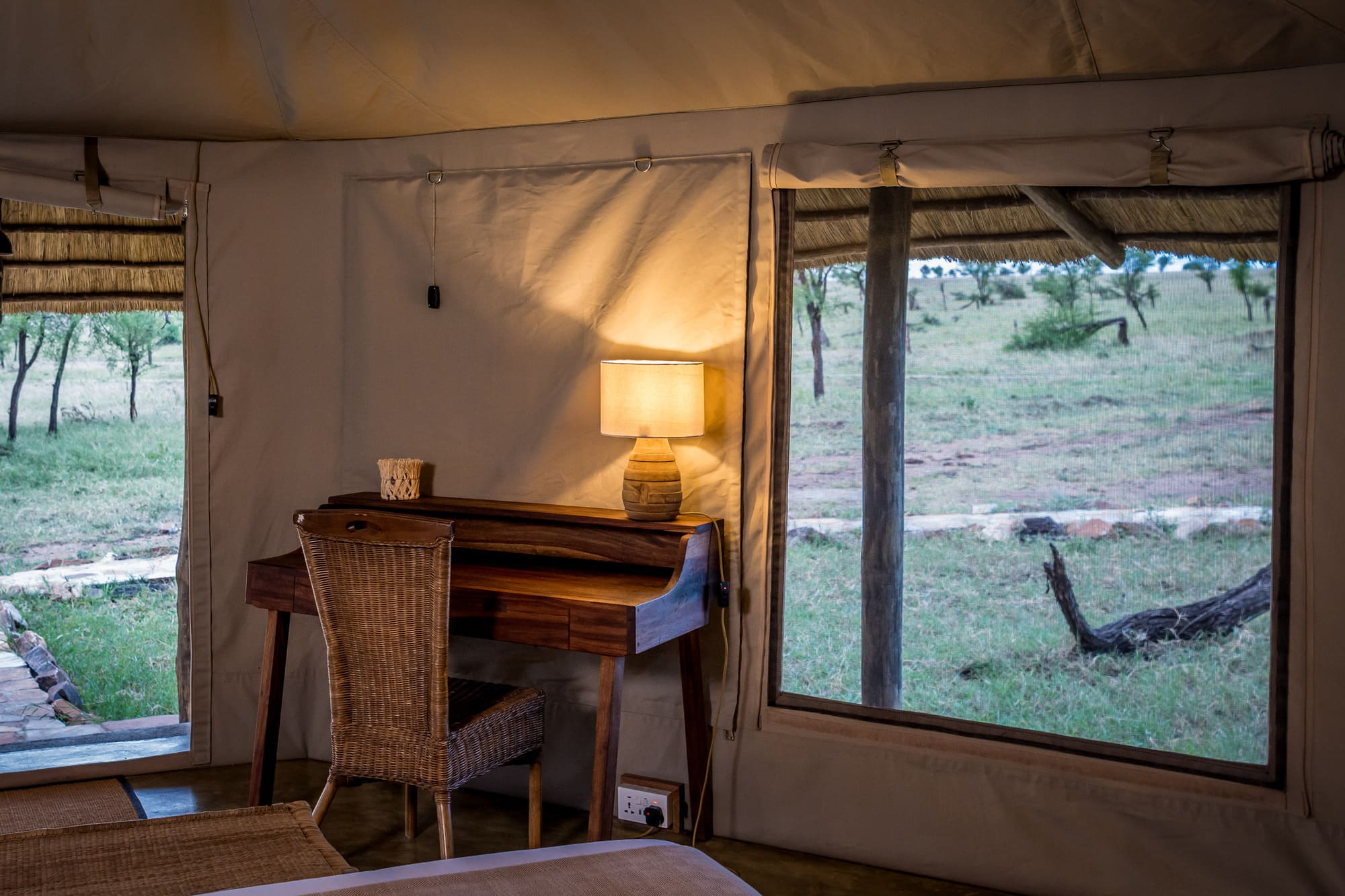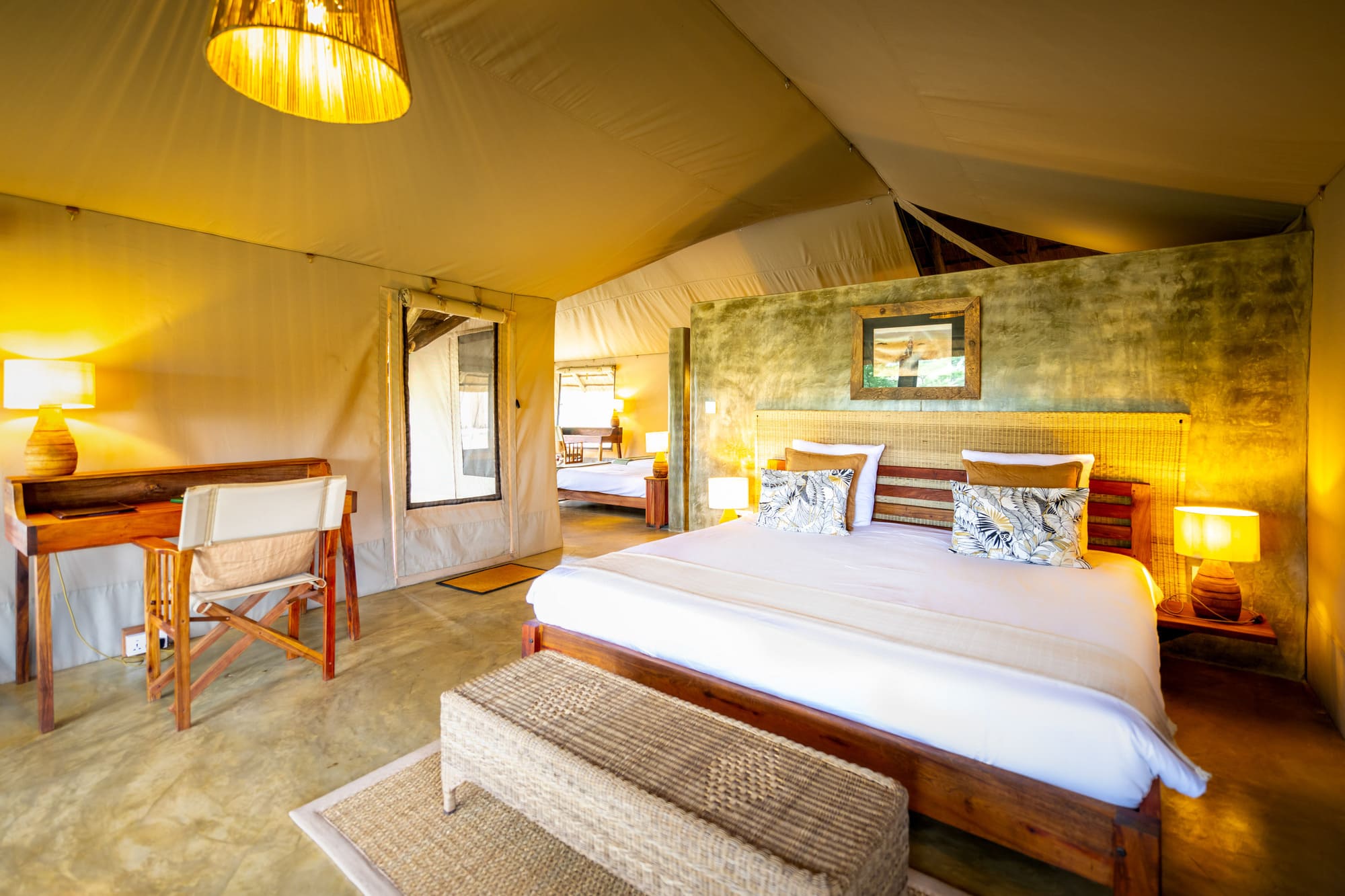 Les tentes de Togoro Plains sont conçues pour offrir une expérience premium : spacieuses, bien aménagées, avec lit double ou twin, coin salon, salle de bain privative et terrasse avec vue.