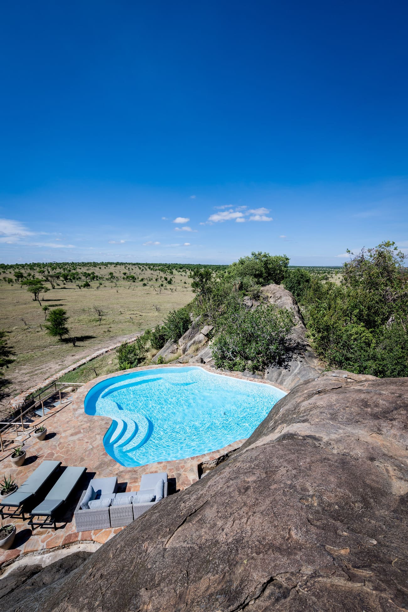 Le camp propose des repas gourmets, un service de qualité et une ambiance intimiste. Un espace lounge permet de se détendre. On peut également profiter d’un moment de sérénité, assis au sommet des rochers avec le Serengeti à 360 degrés.